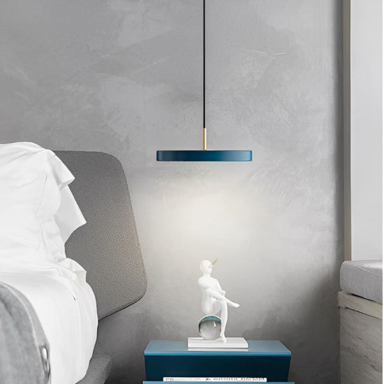 Elevate your space with the Nordic Minimalist Discus Pendant Light, a sleek ceiling feature available in elegant white, blue and black. It is the perfect choice for anyone looking to add modern style and Scandinavian charm to their décor.